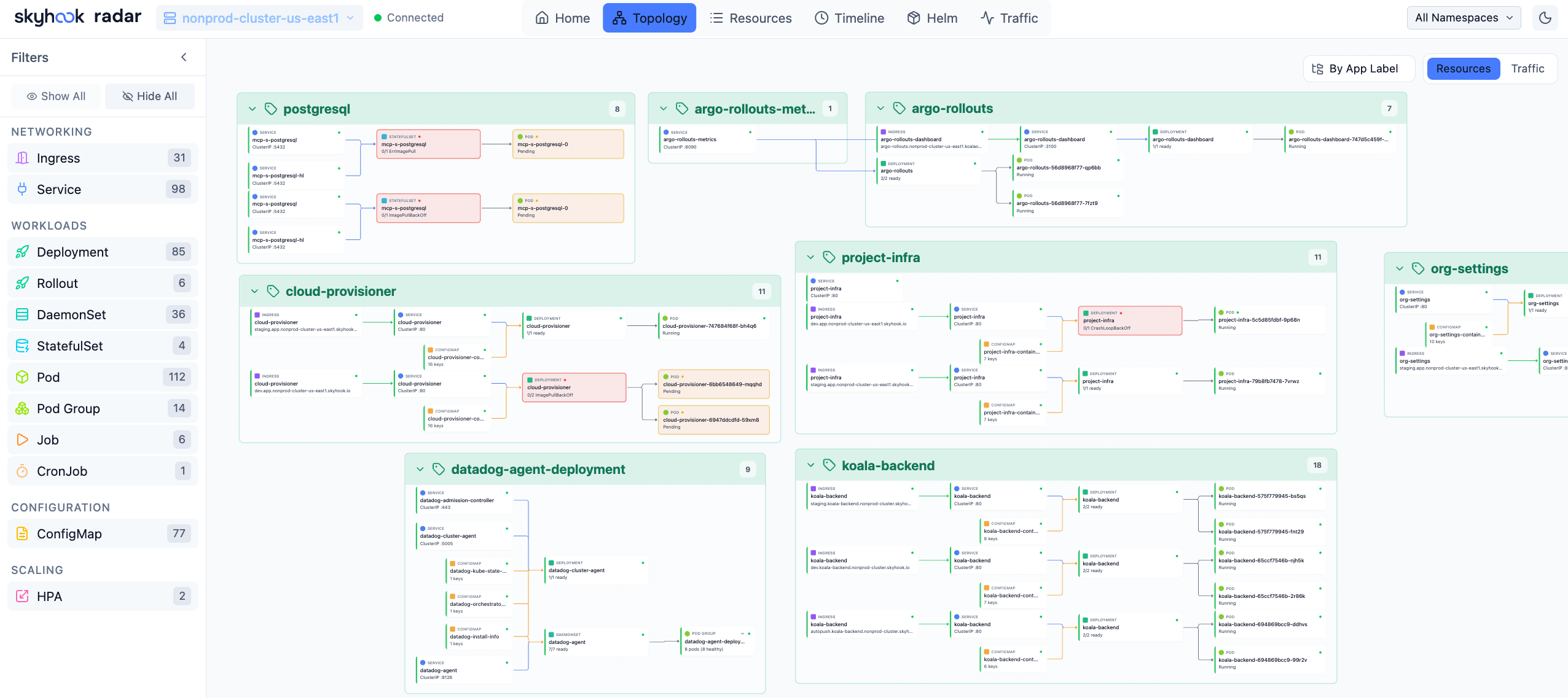 radarThe source is on GitHub: github.com/skyhook-io/radar. Apache 2.0 license. Contributions welcome.
